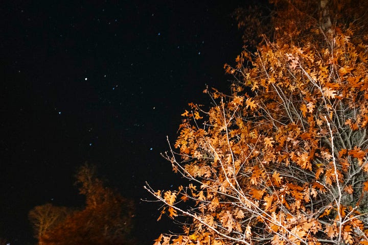 The beginning of the month saw the trees full of orange & yellow leaves still. As I mentioned last month, it was quite the sight to see — beautiful, vibrant leaves coating the trees — and eventually, the ground below.
